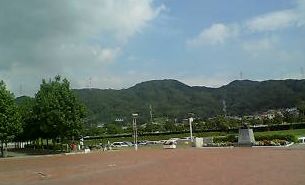 空はちょっと雷雲がある?生駒の山も青々しています。